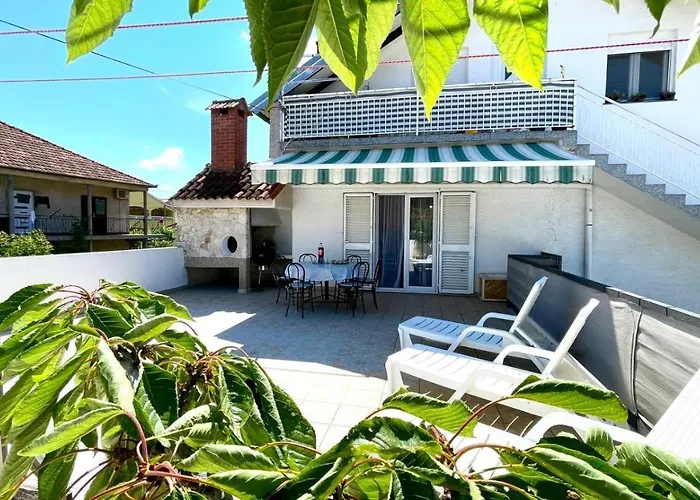 Apartment For 6 + Free Parking Place Zadar, que incluye una terraza, se encuentra a aproximadamente 5 minutos andando de la Crkva Sv. Marija Kraljica Mira. La Torre del Capitán está a 2 km de este apartamento, mientras que la Plaza de los Cinco Pozos se sitúa a 10 minutos en coche.
